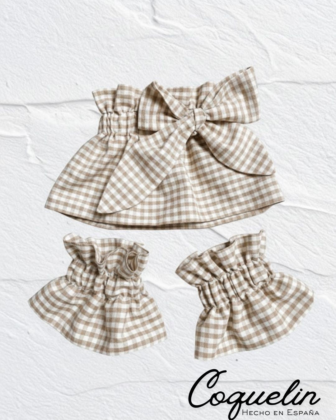 Conjunto cuello y puños vichy beige