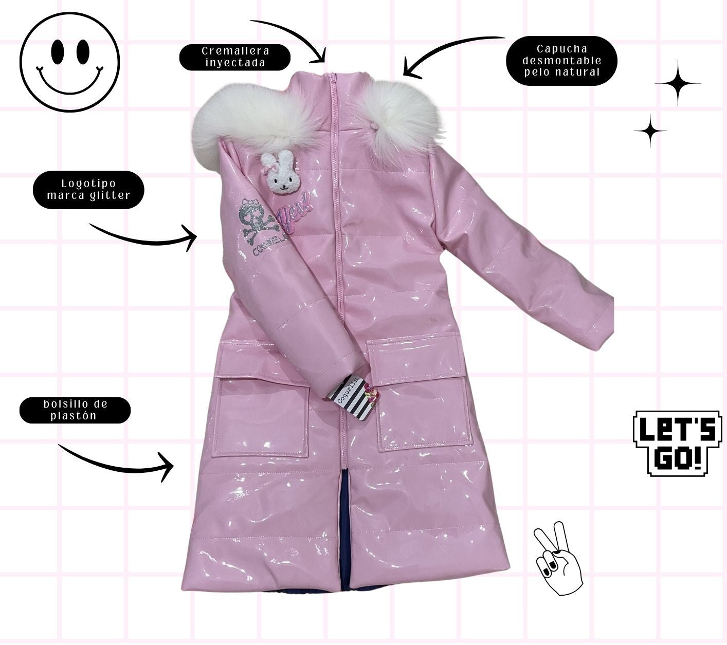 Confeccionado en charol acolchado de 250 grm este abrigo de largo midi con bolsillos de plastón, capucha desmontable y cierre con cremallera inyectada es ya uno de los Top del invierno.