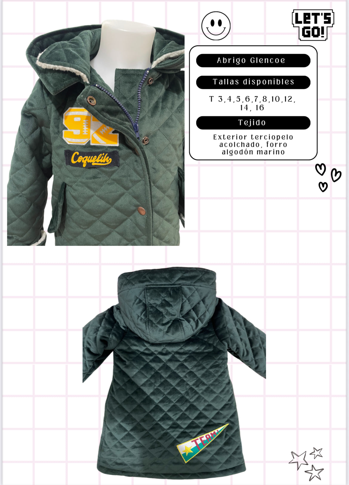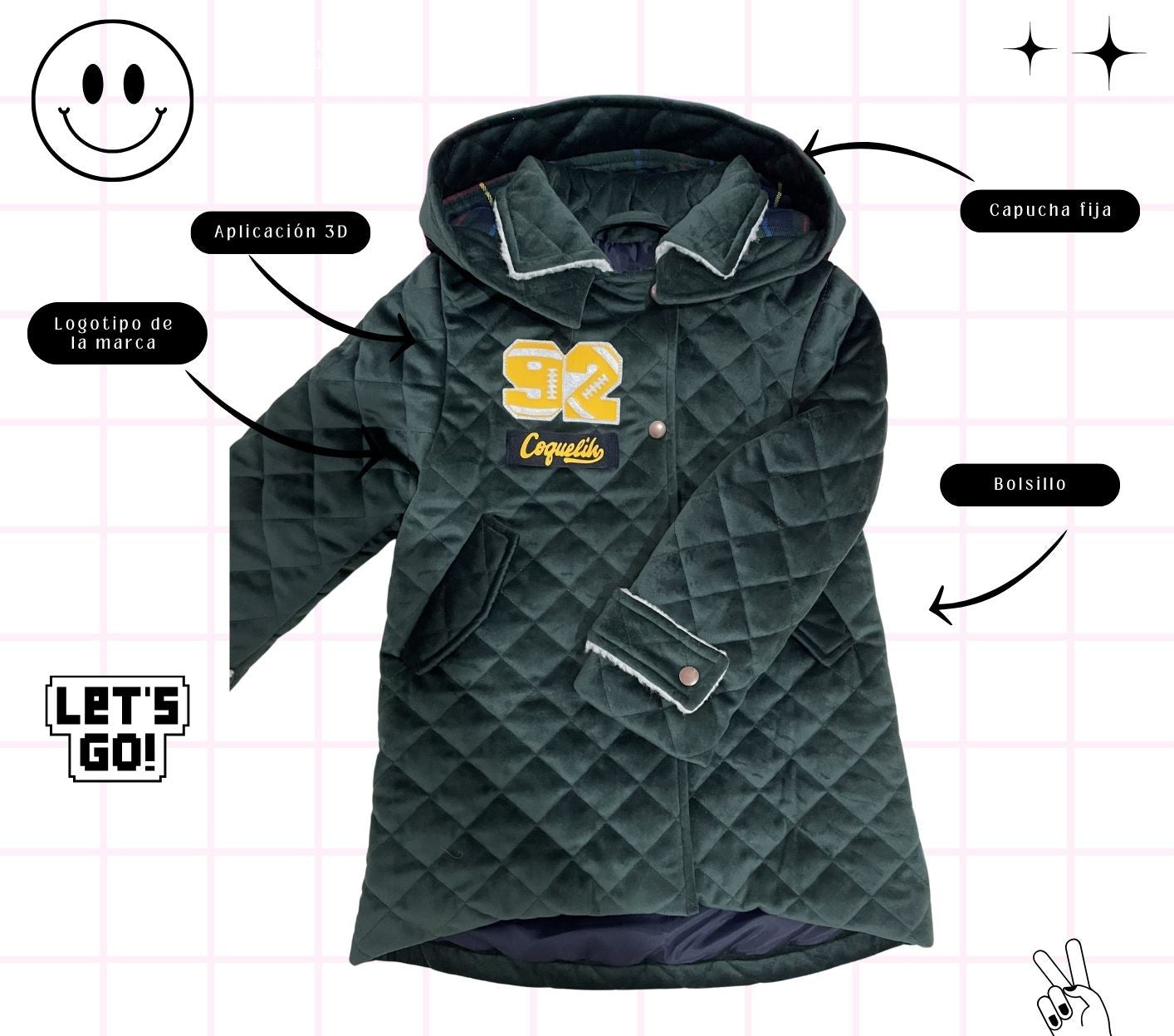 Abrigo niño confeccionado en tejido de terciopelo lavable.