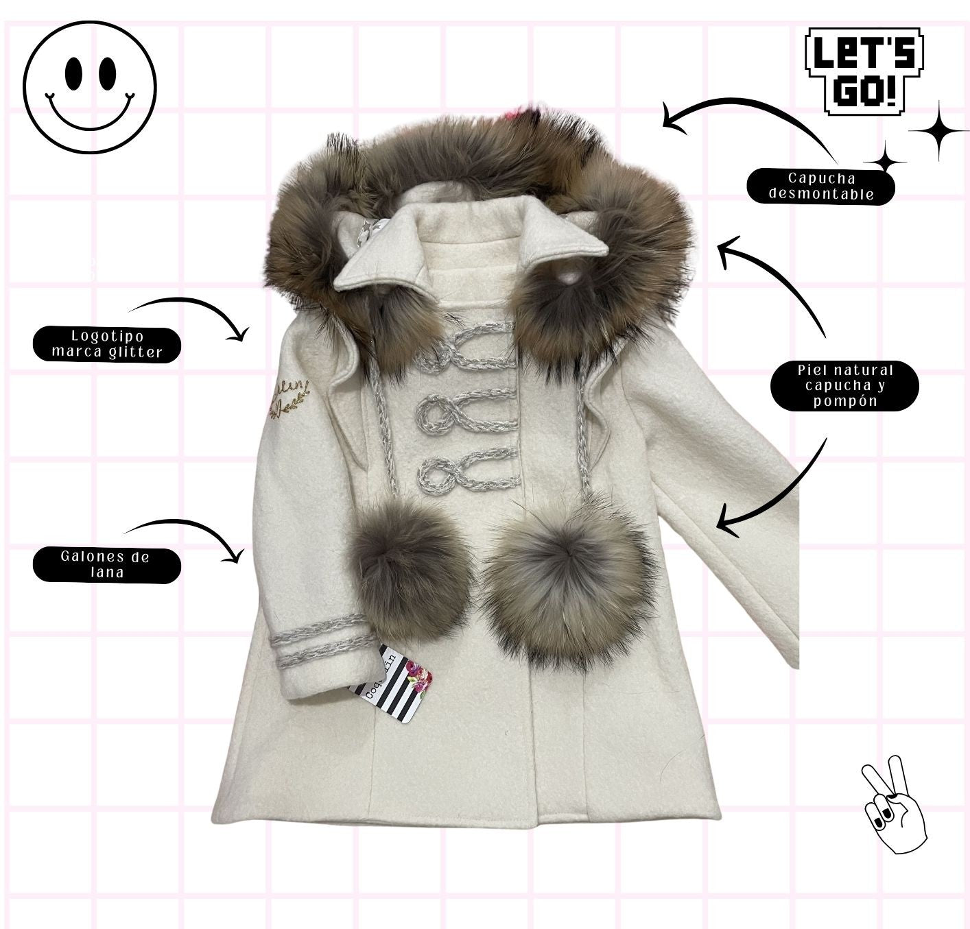 Una prenda capricho sólo apta para las clientas más exigentes que valoren no sólo el diseño si no la calidad de los materiales y la confección exquisita. Fabricado en paño de lana y pelo de zorro certificado SAGA FURS de procedencia europea.