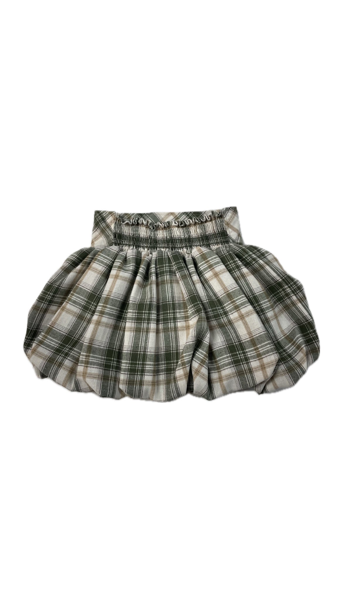 Confeccionada en un print de tartán (cuadros) en tonos neutros y muy ponibles: blanco roto, verde militar y tostados. ¡Combina con todo y es ideal para el otoño-invierno!